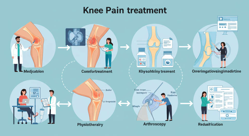 Setelah diagnosis dibuat, rawatan sakit lutut di hospital biasanya bermula dengan pendekatan konservatif. Ini termasuk penggunaan ubat-ubatan seperti ubat anti-radang nonsteroid (NSAIDs) untuk mengurangkan keradangan dan kesakitan. Ubat seperti ibuprofen dan naproxen sering kali disarankan oleh pakar sakit lutut untuk memberikan kelegaan segera. Ubat-ubatan ini berfungsi dengan menghalang enzim yang menyebabkan keradangan, memberikan kelegaan kepada individu yang mengalami sakit lutut.