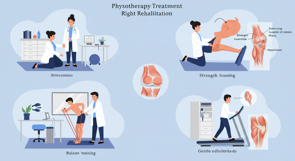 Fisioterapi juga membantu menguatkan otot di sekitar lutut, yang penting untuk menyokong sendi dan mengurangkan risiko kecederaan. Otot yang kuat dapat memberikan sokongan tambahan kepada lutut, mengurangkan tekanan pada sendi semasa melakukan aktiviti. Sebagai contoh, senaman penguatan seperti squats dan lunges yang disarankan oleh fisioterapis dapat membantu membina kekuatan otot paha dan betis, yang seterusnya menyokong lutut sebelah kanan. Dengan otot yang lebih kuat, pesakit dapat mengurangkan risiko mengalami kecederaan di masa hadapan.