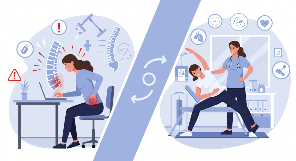 Fisioterapi adalah pilihan rawatan yang sangat berkesan untuk sakit pinggang perempuan. Melalui sesi fisioterapi, pesakit dapat meningkatkan kekuatan otot di sekitar sendi dan meningkatkan fleksibiliti. Fisioterapis akan merancang program latihan yang disesuaikan dengan keperluan individu, termasuk latihan penguatan otot dan teknik regangan. Sebagai contoh, jika anda mengalami sakit pinggang perempuan akibat kecederaan, fisioterapis mungkin akan mengajarkan anda latihan khusus untuk menguatkan otot-otot di sekitar kawasan pinggang dan mengurangkan ketegangan. Dengan mengikuti sesi fisioterapi secara konsisten, pesakit yang mengalami sakit pinggang berterusan dapat merasakan peningkatan yang ketara dalam kekuatan dan mobiliti mereka.