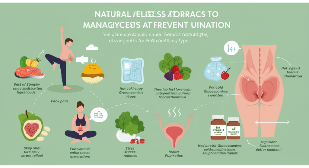 Suplemen semulajadi seperti glucosamine, chondroitin, dan omega-3 juga boleh membantu dalam menguruskan sakit pinggang dan kerap kencing. Suplemen ini dapat membantu mengurangkan keradangan dan menyokong kesihatan sendi. Sebagai contoh, glucosamine dan chondroitin sering digunakan untuk merawat masalah sendi dan dapat membantu mengurangkan kesakitan yang berkaitan dengan arthritis.