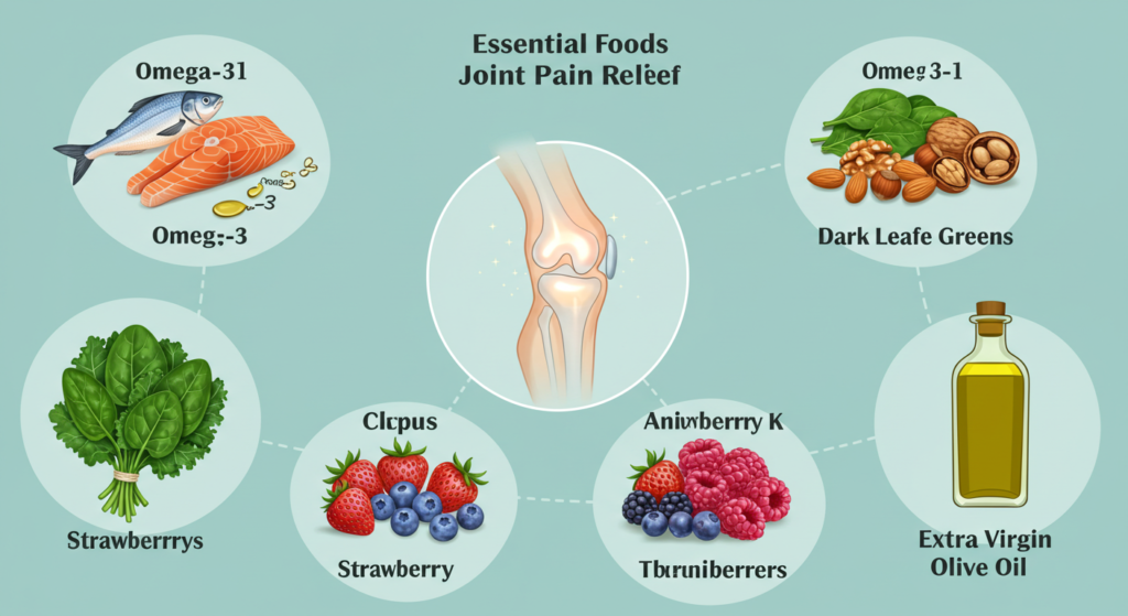 Minyak zaitun extra virgin mengandungi oleocanthal, yang mempunyai kesan anti-radang yang serupa dengan ibuprofen. Menggunakan minyak zaitun dalam masakan harian boleh membantu mengurangkan kesakitan sendi. Sebagai contoh, seorang wanita yang menggantikan minyak masak biasa dengan minyak zaitun dalam dietnya mungkin mendapati bahawa lututnya terasa lebih baik dan kurang sakit. Dengan memahami makanan untuk sakit lutut ini, individu dapat membuat pilihan pemakanan yang lebih sihat untuk menyokong kesihatan sendi mereka.